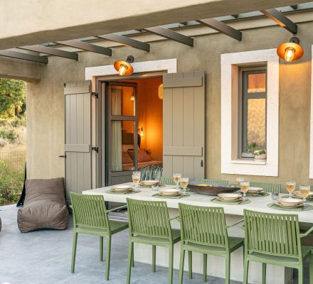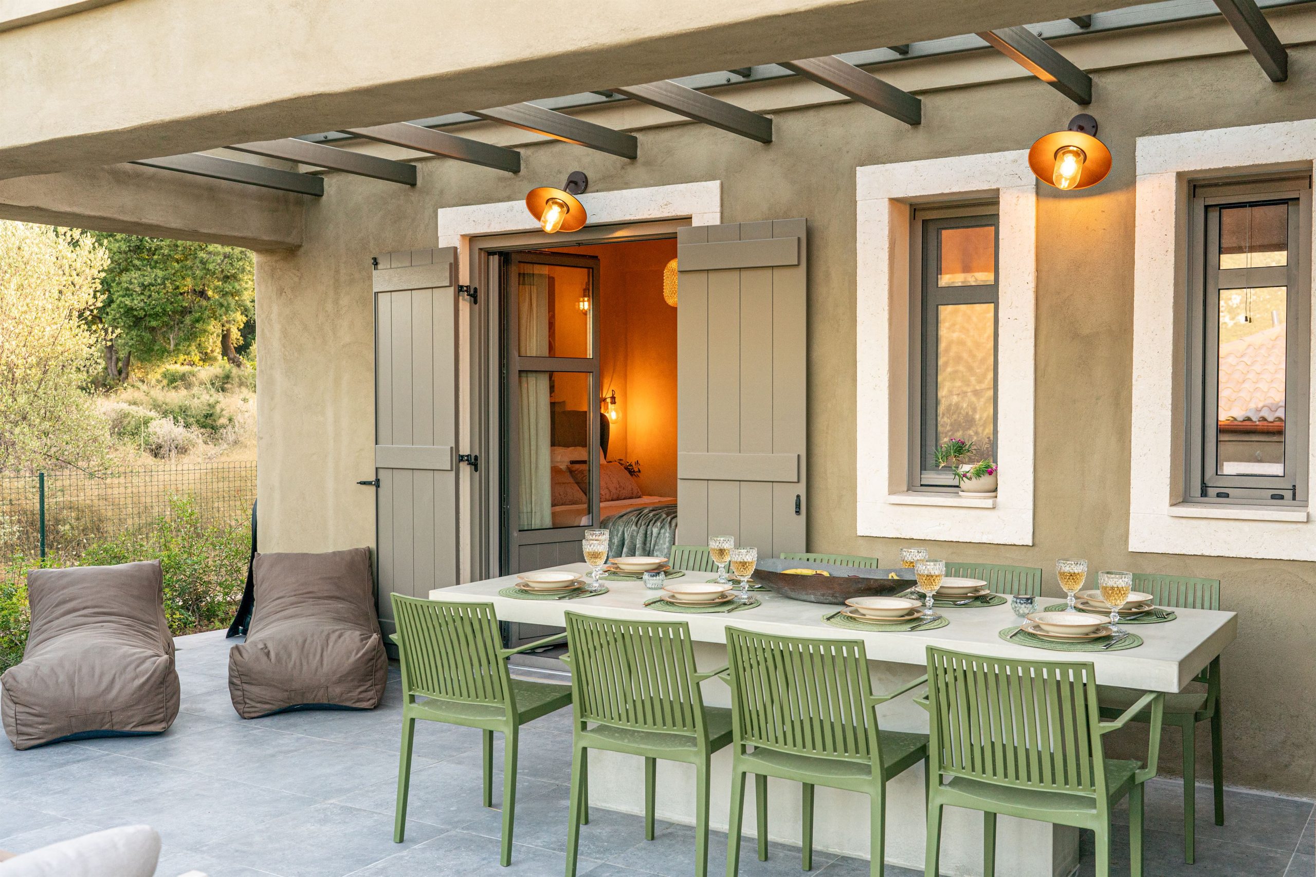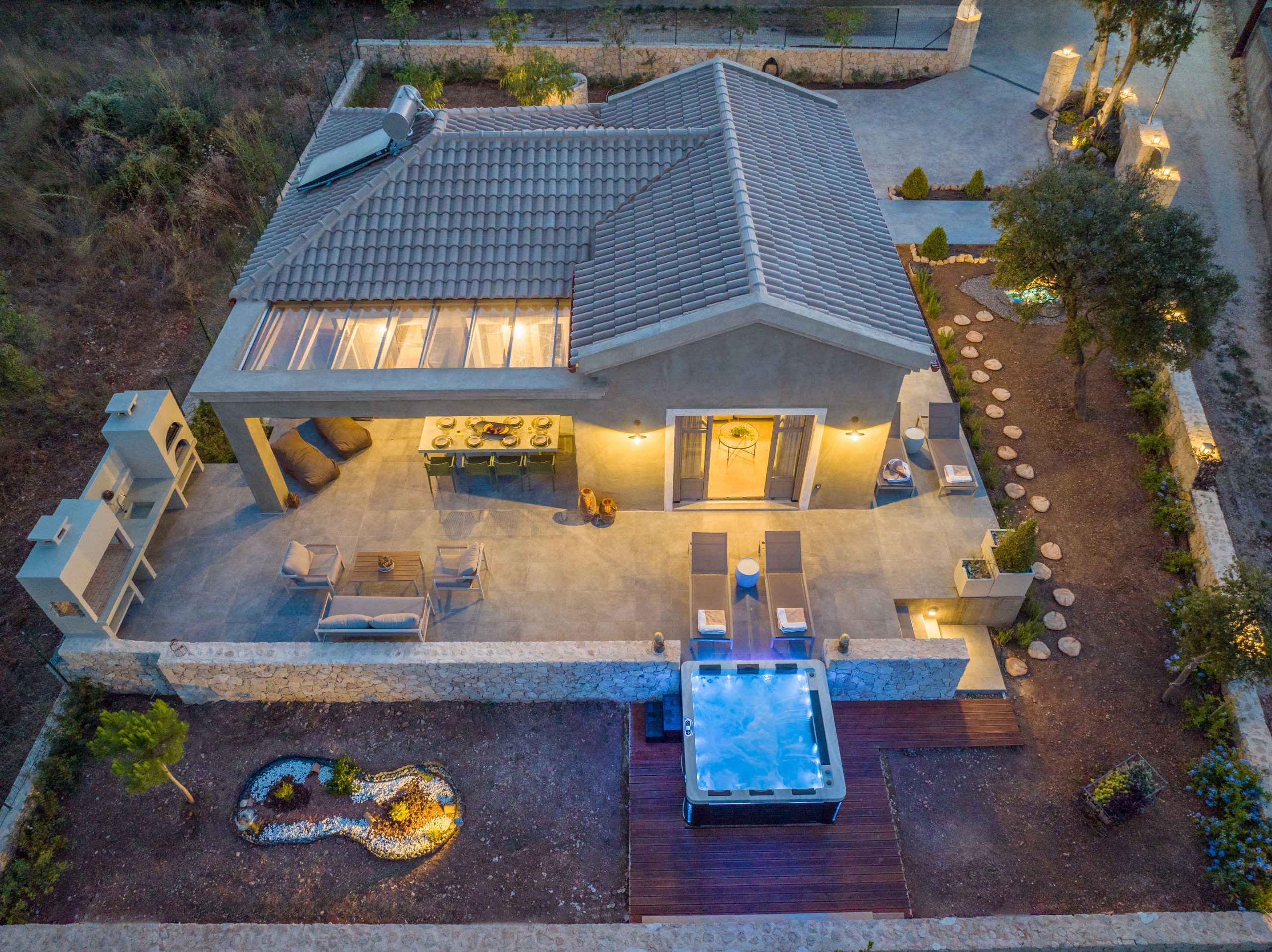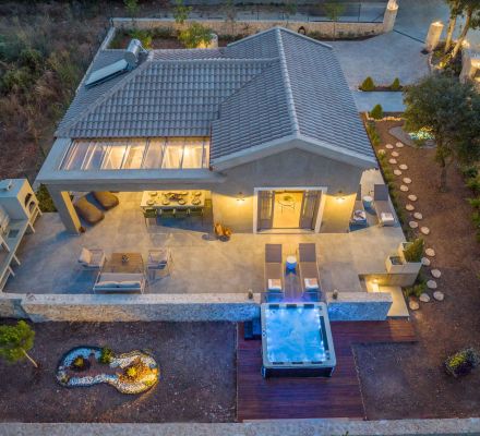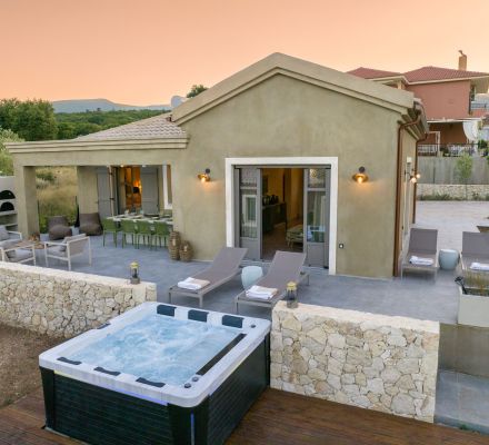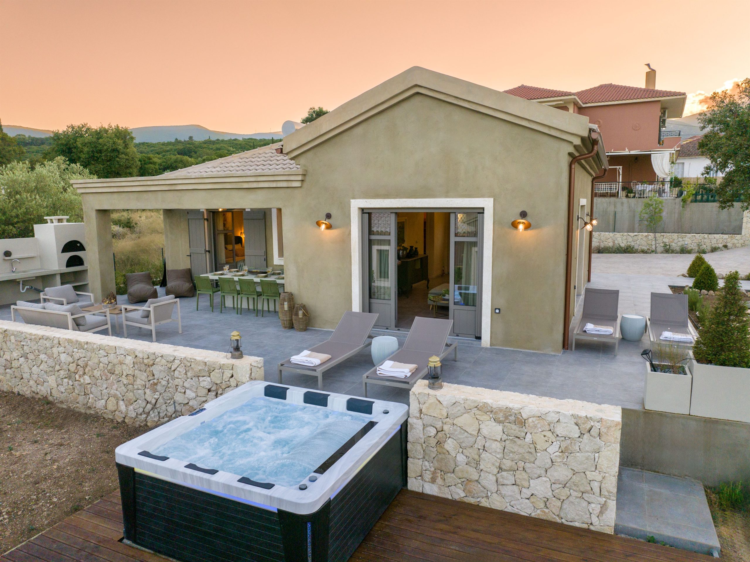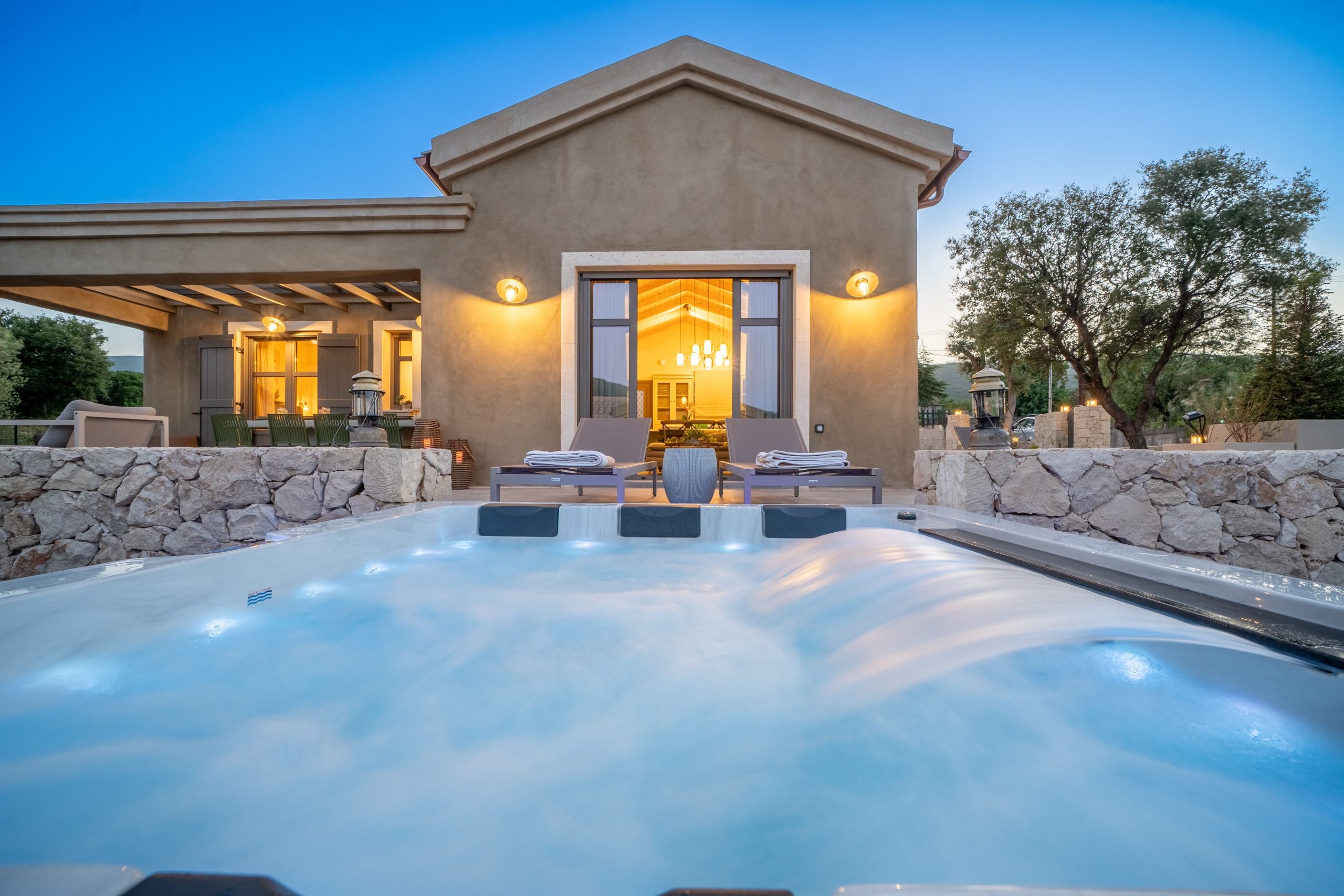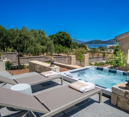 Βγείτε στην ιδιωτική βεράντα με πανοραμική θέα στη θάλασσα και στα βουνά. Απολαύστε το υδρομασάζ, το υπαίθριο καθιστικό και τον γαλήνιο κήπο — ιδανικά για χαλάρωση οποιαδήποτε στιγμή της ημέρας.