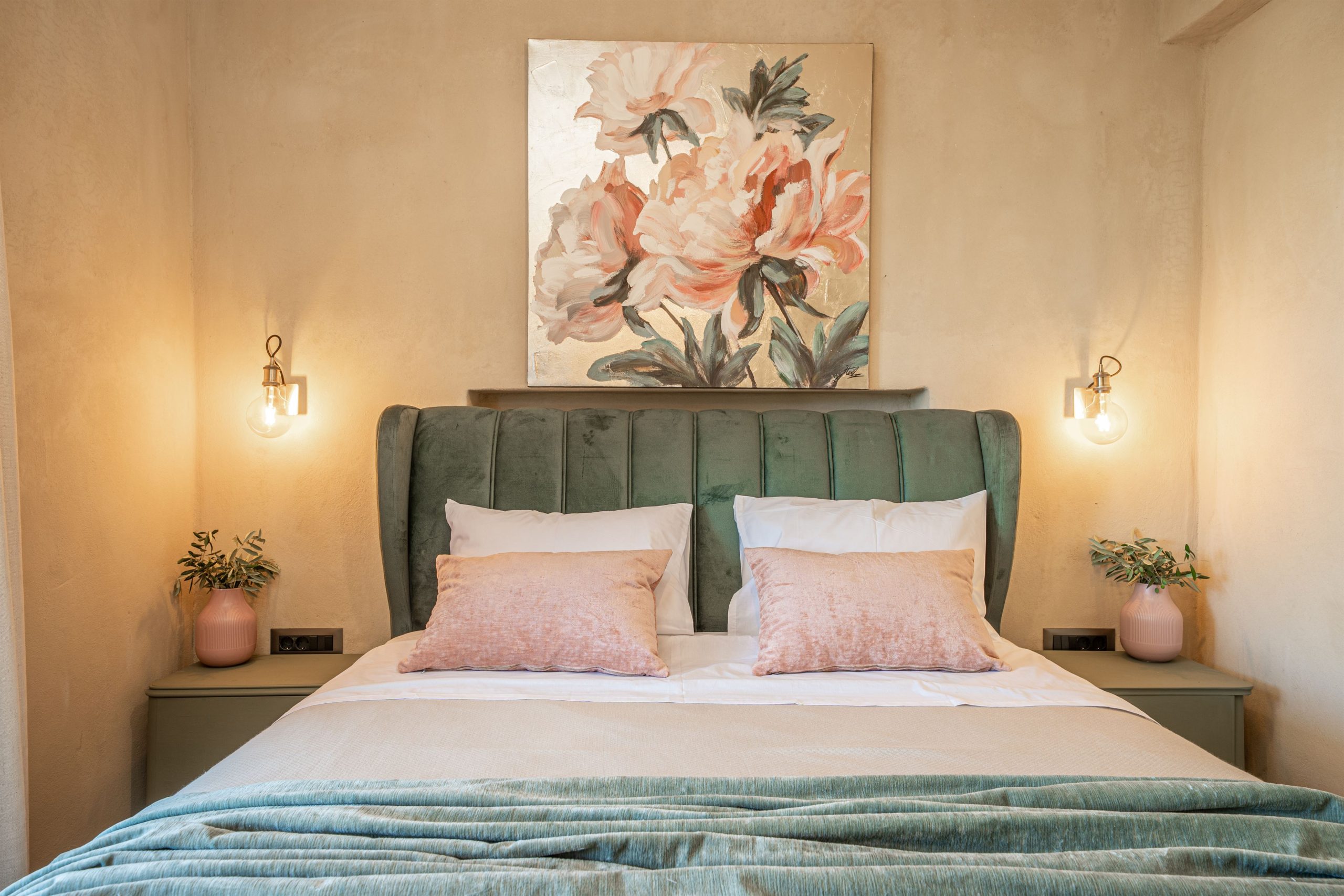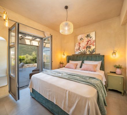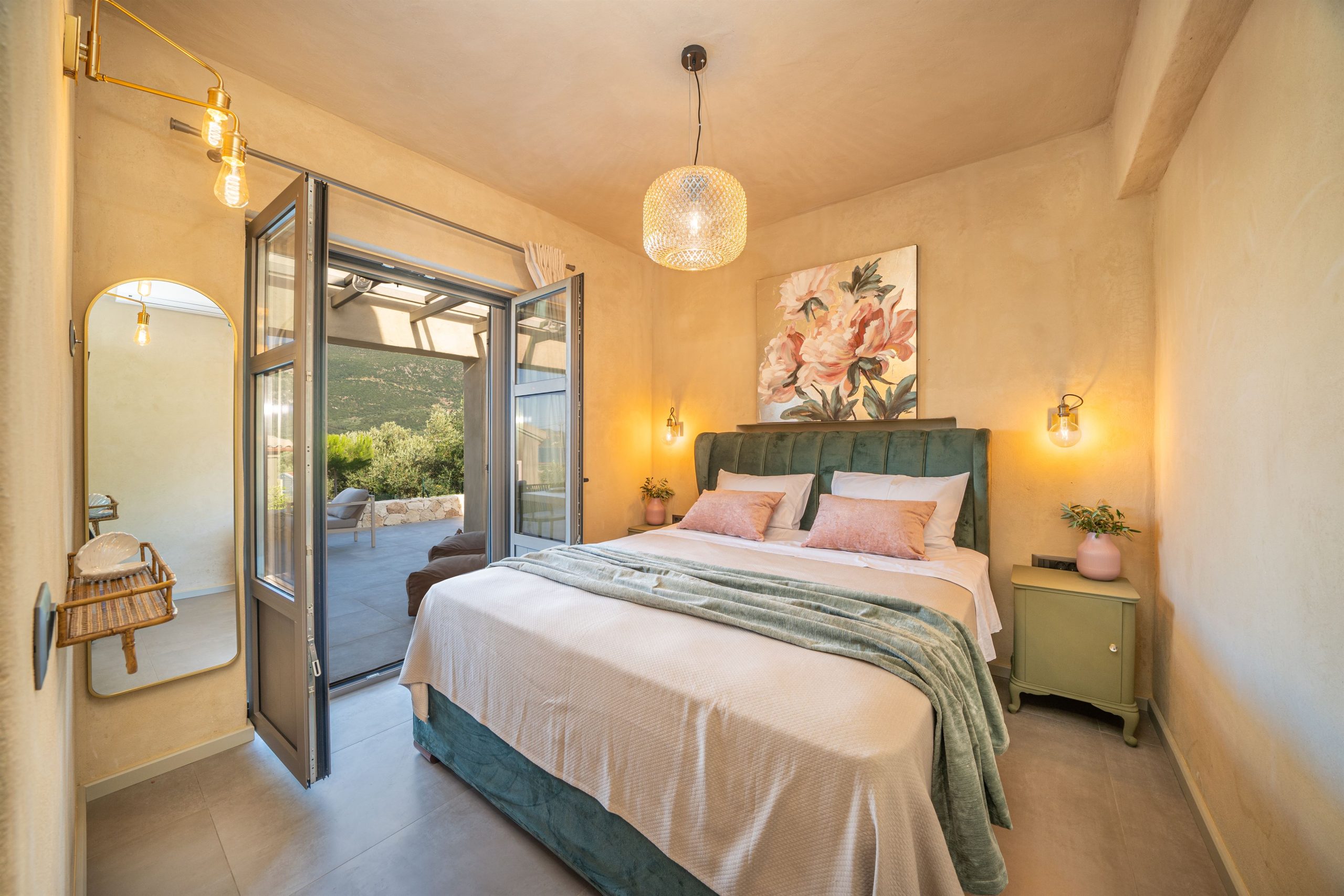 Φωτεινό και ευάερο διπλό υπνοδωμάτιο με κρεβάτι queen-size, σε απαλούς ουδέτερους τόνους, με άμεση πρόσβαση στη βεράντα. Περιλαμβάνει ιδιωτικό ensuite μπάνιο με ντους walk-in, προσφέροντας επιπλέον άνεση και ιδιωτικότητα.
