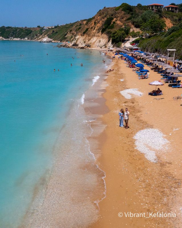 Μία από τις πιο εντυπωσιακές παραλίες της Κεφαλονιάς, γνωστή για τα πεντακάθαρα τιρκουάζ νερά, τα λευκά βότσαλα και τις καταπράσινες πλαγιές γύρω της. Βρίσκεται λίγα λεπτά οδήγησης από τη Σάμη και διαθέτει οργάνωση με ξαπλώστρες, μπαρ παραλίας και θαλάσσια σπορ. Η συναρπαστική φυσική της ομορφιά και η ήρεμη ατμόσφαιρα την καθιστούν κορυφαία επιλογή για όσους αναζητούν μια αξέχαστη εμπειρία θάλασσας. Δεν είναι τυχαίο ότι εμφανίζεται και στην ταινία «Το Μαντολίνο του Λοχαγού Κορέλλι».”